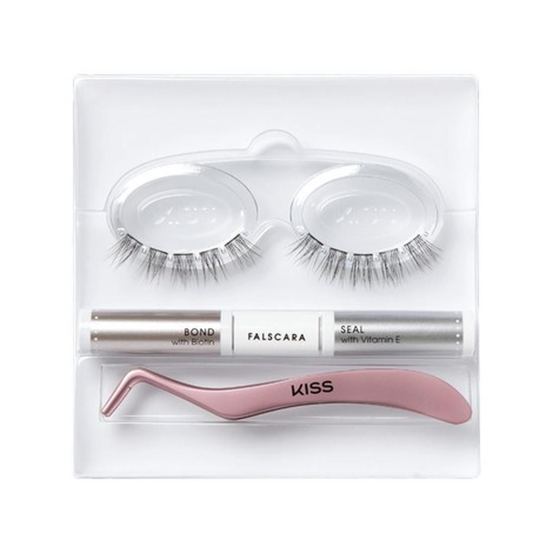 KISS Falscara Eyelash - Starter Kit What’s so different about Falscara? Traditional false eyelashes are glued to your lash line and rest on top of your lashes. Falscara WISPS attach to the underside of your natural lashes, so you can't even see the tiny microbands that hold the WISPS together. That’s what makes them look so natural. Go from a subtle look to super glam–WISPS are buildable and customizable.