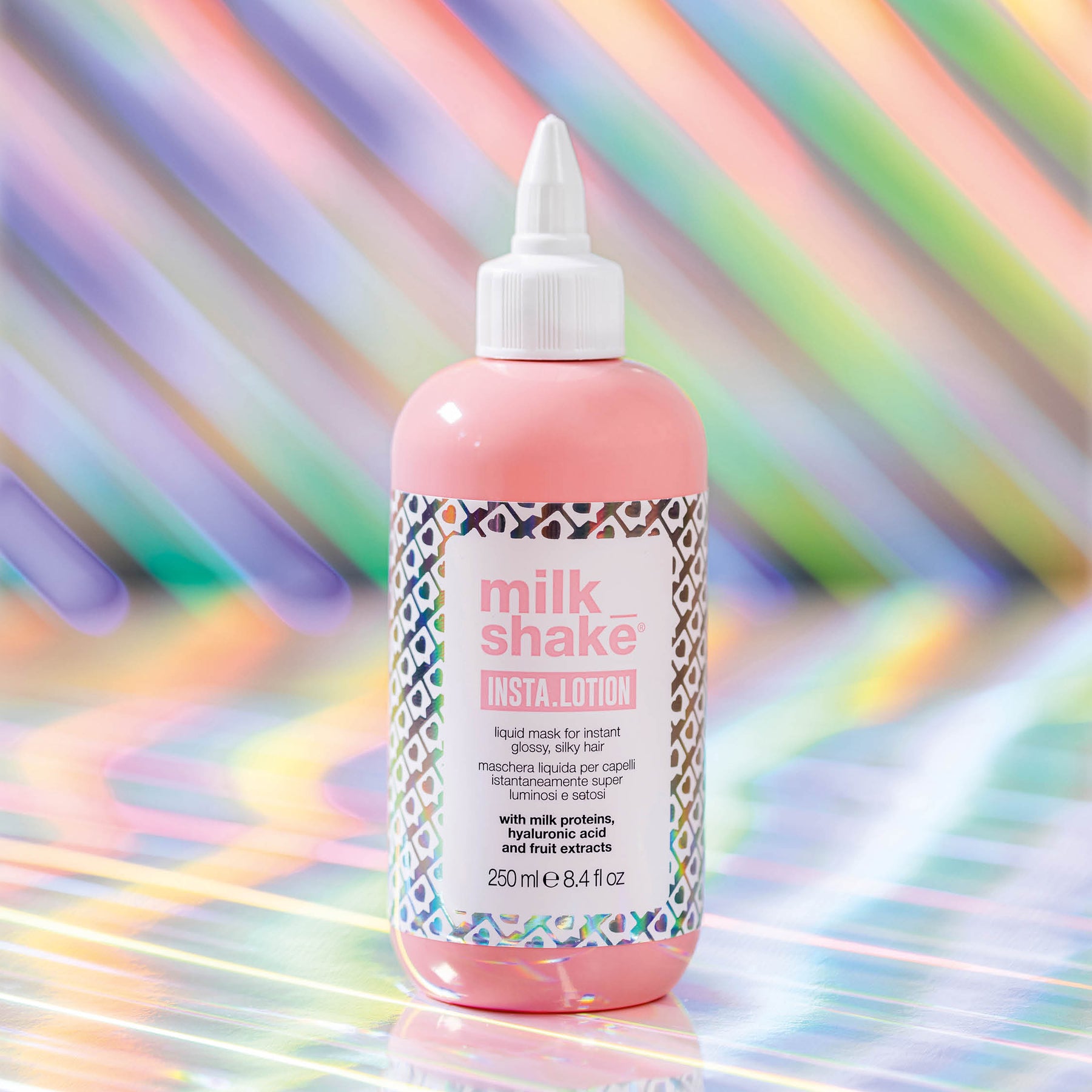 A treatment with milk proteins, hyaluronic acid, lemon and blueberry extracts. In just a few seconds it detangles and hydrates the hair, giving instant shine and removing frizz. Its liquid texture is as light as water and easy to apply, smoothing the hair’s porosity and closing the hair cuticles, giving mirror-like shine! Ideal for colour-treated, chemically-treated or dry hair.