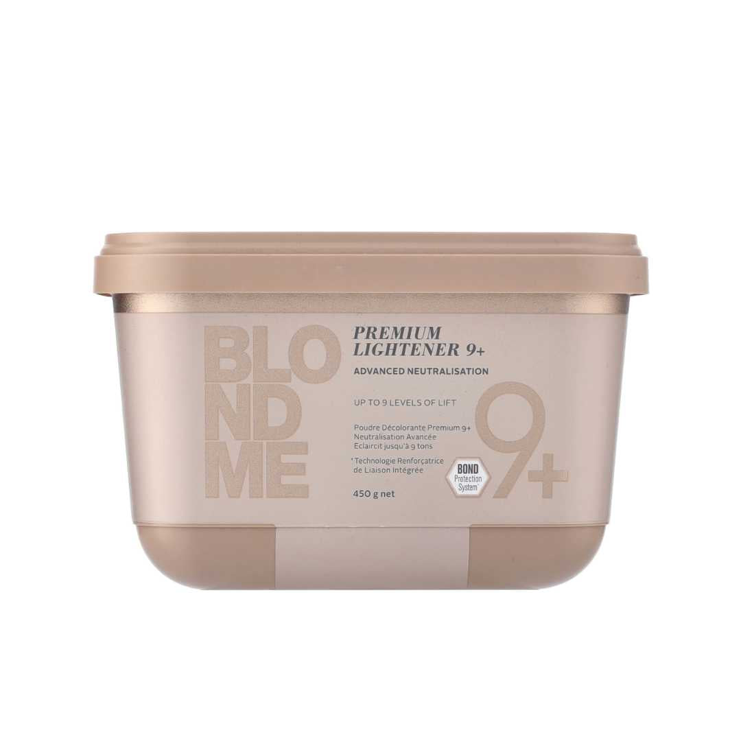 Bond Enforcing Premium Lightener 9+ lightens up to 9 levels, enforces bonds within the hair fiber and provides advanced neutralization and improved hair care when used with the BLONDME Premium Developer.