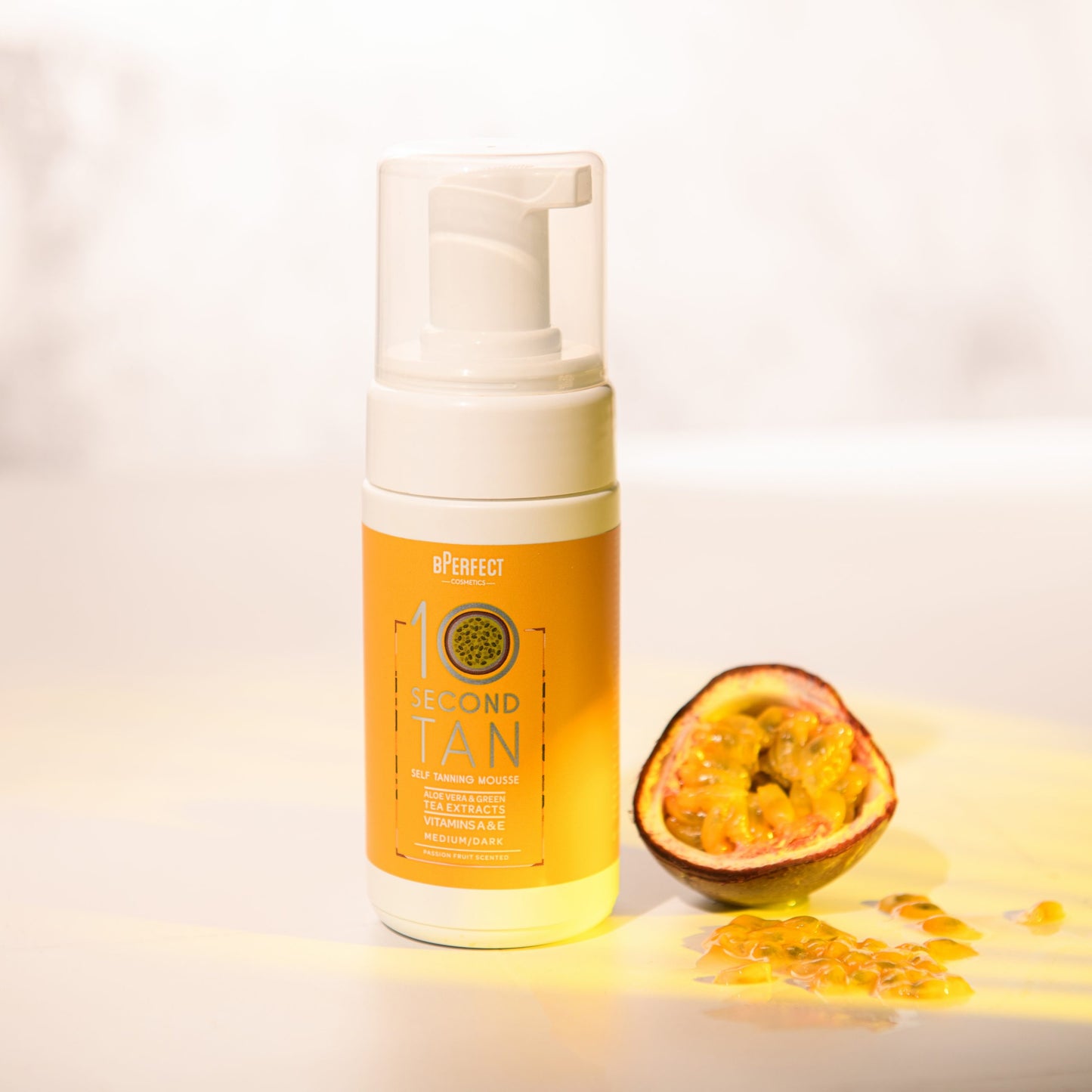 Introducing the NEW   Travel Size   10 Second Tan Medium/Dark Mousse in   Passionfruit   Scent!