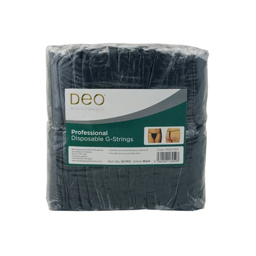 Created for more intimate waxes, these Deo black G-strings are comfortable and easily disposable. One size fits all.