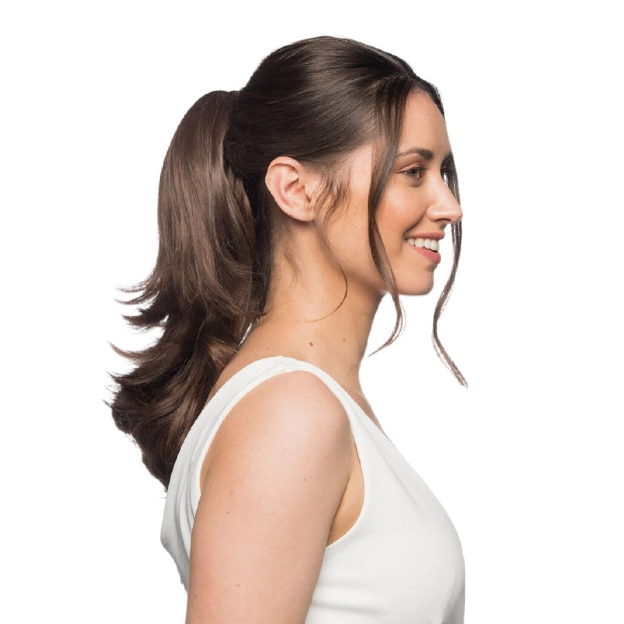 Create the illusion of a thick, healthy-looking ponytail that’s filled with bounce and body with our Fibre Medium Flicky Ponytail. This luxurious ponytail hair extension is fashioned from premium Stranded Fibre Hair, a superior heat-resistant material that looks and feels silky-smooth, soft and realistic. Extremely versatile, you can use either the bulldog clip to gain a quick and sturdy fit or remove this and use the built-in drawstrings to get a closer attachment. Simple, effective and oh-so stylish, the Fibre Medium Flicky Ponytail helps elevate your look in just a few minutes.