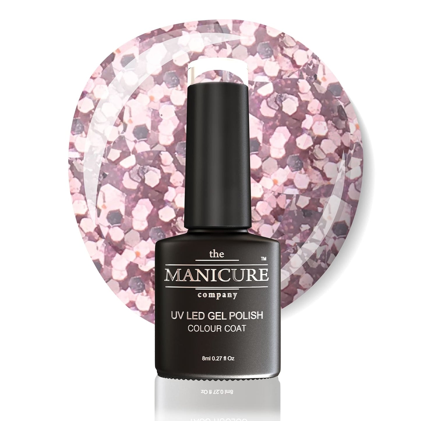 Rose Garden gel nail polish is a beautiful light rosé pink gel base with matching glitter throughout. Apply over a base colour or build up to full coverage. It has a semi opaque - opaque finish.